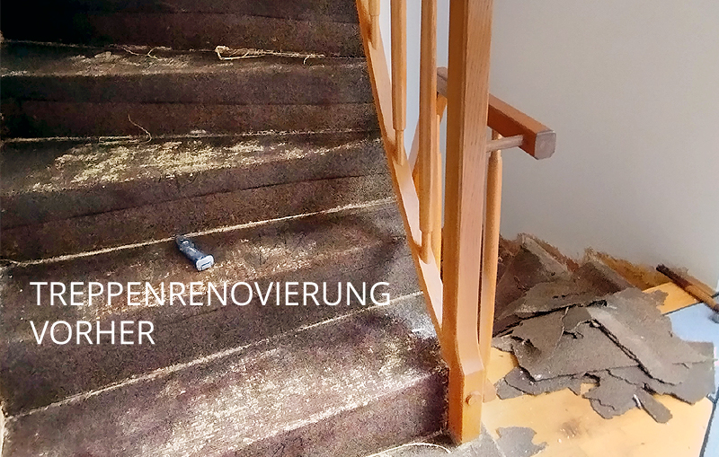 Die notwendigen Arbeitsschritte, je nach Typ und Zustand der Treppe, werden von uns so ausgeführt das der alte Belag Rückstandslos entfernt und neu aufgearbeitet wird.