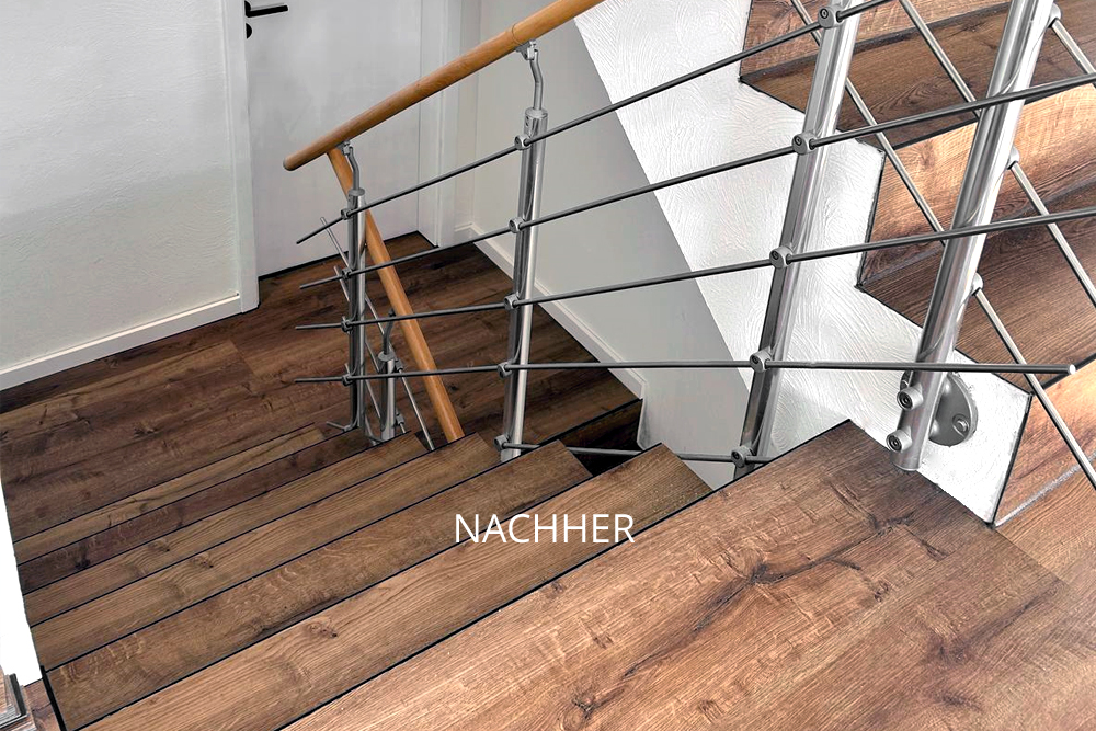 Die neuen Treppenstufen werden passgenau eingefügt und können, je nach Wunsch, mit passenden Profilen ausgestattet. Ob Parkett, Vinyl, Teppichboden, Sie dürfen ihre Wünsche bei uns frei entfalten.