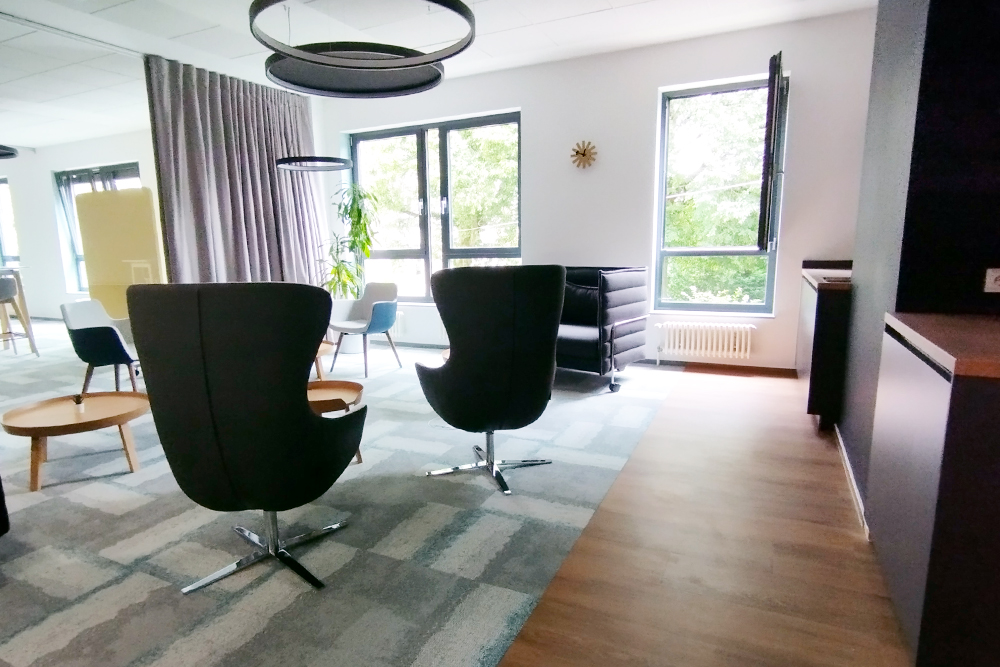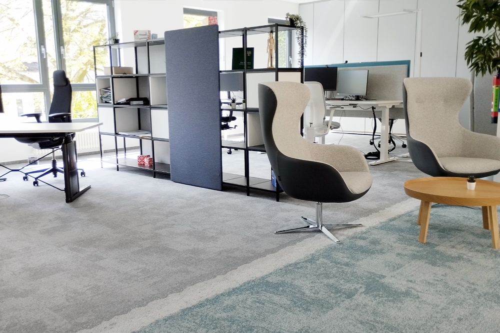 Die Büroräume wurde mit mehren modularen Bodenbelägen konzeptionell in einem Großraumbüro und angrenzenden Einzelbüros verlegt.