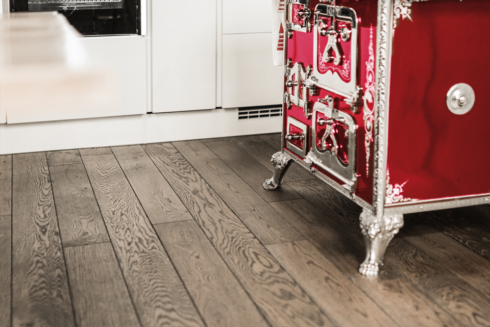 Eine schwarzgeölte Eichediele gab dem Charakter des Hauses eine gehobene und dennoch rustikale Note.