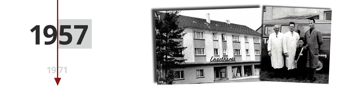 Der Firmengründer nahm den Laden sowie den Malerbetrieb wieder auf, bis im April 1953 sein Sohn Wolfgang in die Firma eintrat. Im Oktober des selben Jahres kam Sohn Klaus ebenfalls ins Geschäft. 1957 entstand an heutiger Stelle der Neubau mit 7 WG und einem Ladenlokal von 100 qm. 1971 erhielt Klaus Engelhardt den Fußbodenbrief.