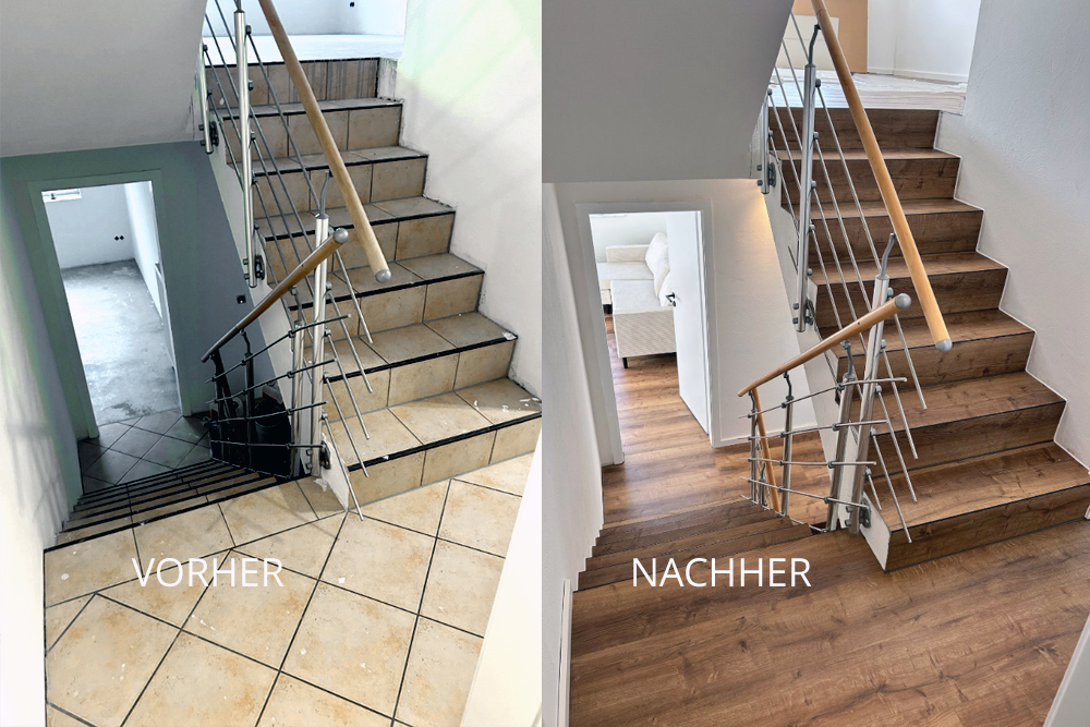 Die neuen Treppenstufen werden passgenau eingefügt und können, je nach Wunsch, mit passenden Profilen ausgestattet. Ob Parkett, Vinyl, Teppichboden, Sie dürfen ihre Wünsche bei uns frei entfalten.