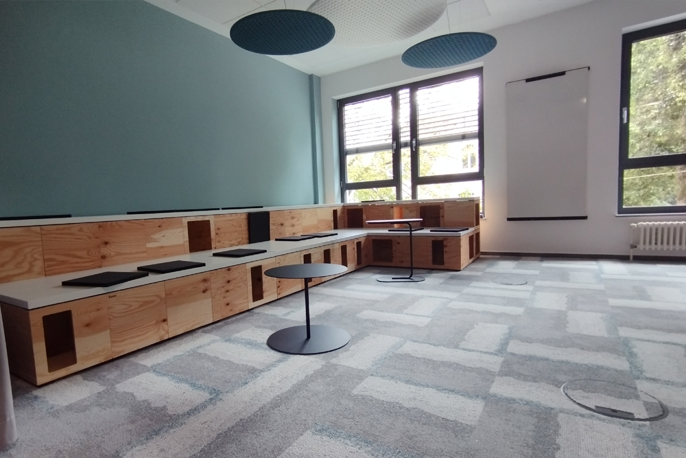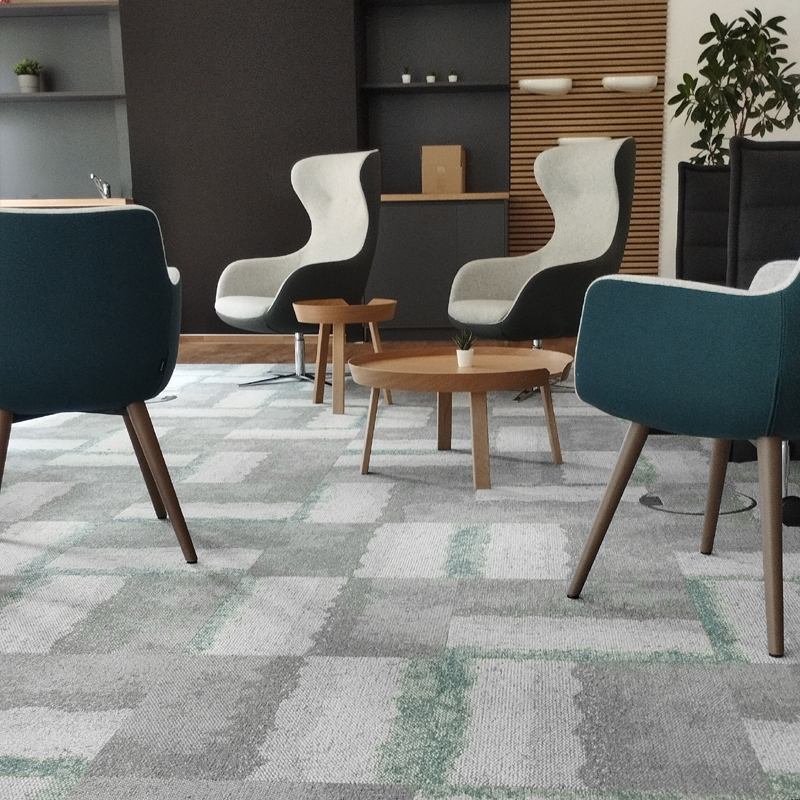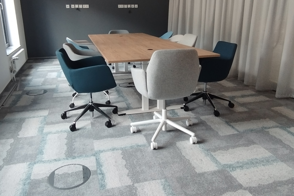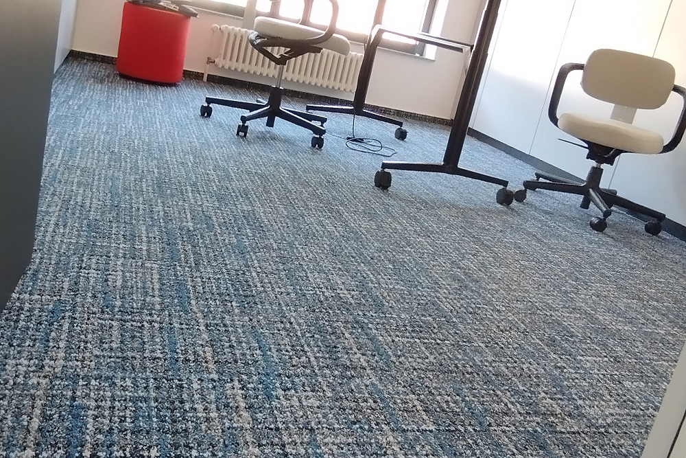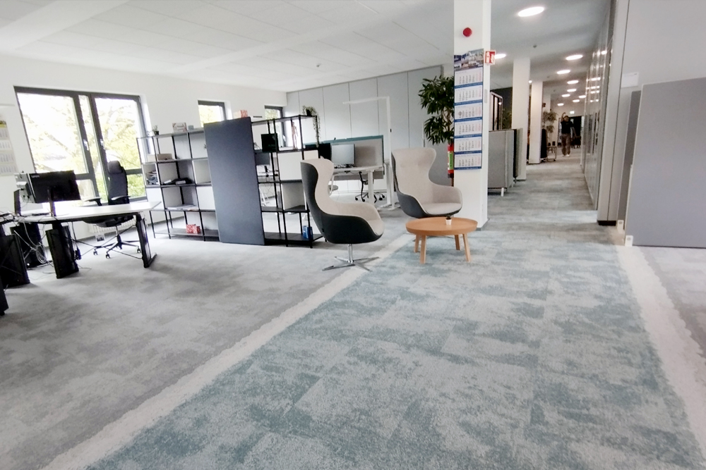 Die Büroräume wurde mit mehren modularen Bodenbelägen konzeptionell in einem Großraumbüro und angrenzenden Einzelbüros verlegt.