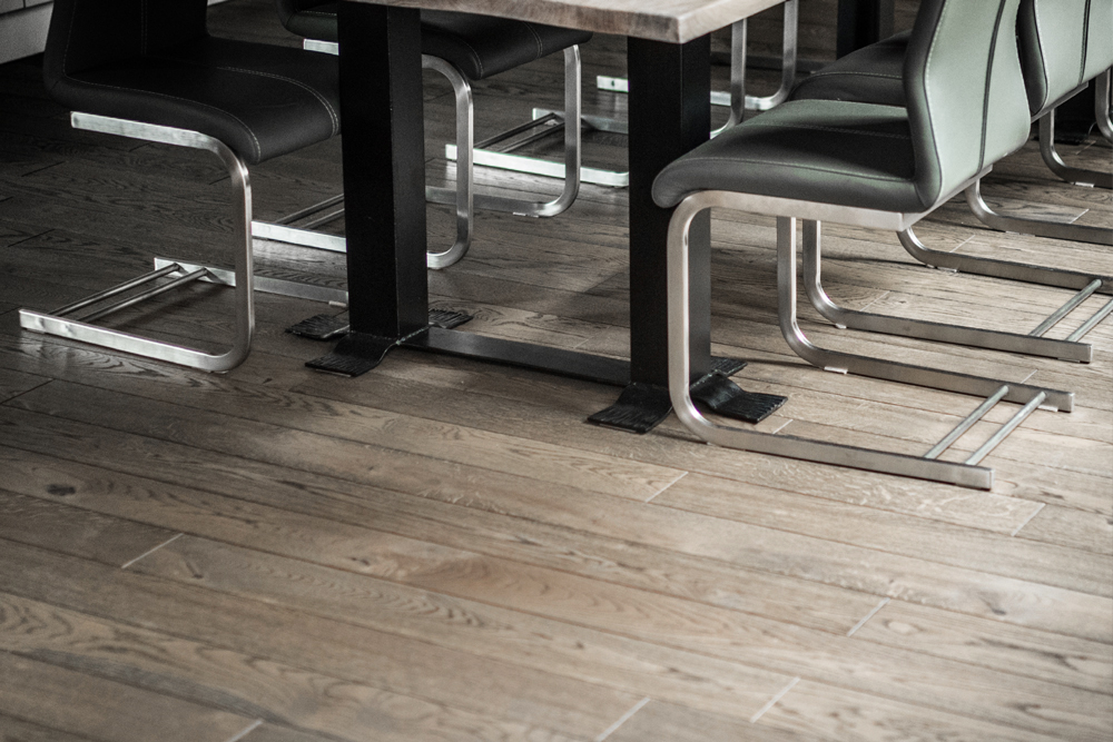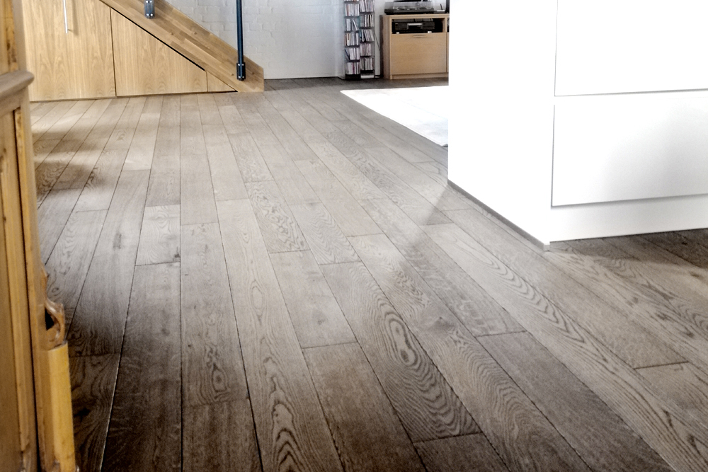 Eine schwarzgeölte Eichediele gab dem Charakter des Hauses eine gehobene und dennoch rustikale Note.
