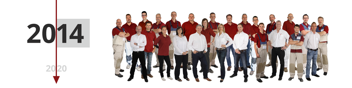 Die Betriebsgröße hat sich im Jahre 2014 auf 25 Mitarbeiter erweitert und die Firma Engelhardt ist eine von nur noch wenigen ursprünglich inhabergeführten traditionellen Handwerksfirmen in NRW, mit langjähriger Familiengeschichte. Das familäre Arbeitsklima und die Tradition schafft viel Vertrauen und Kompetenz bei Kunden und Mitarbeitern.